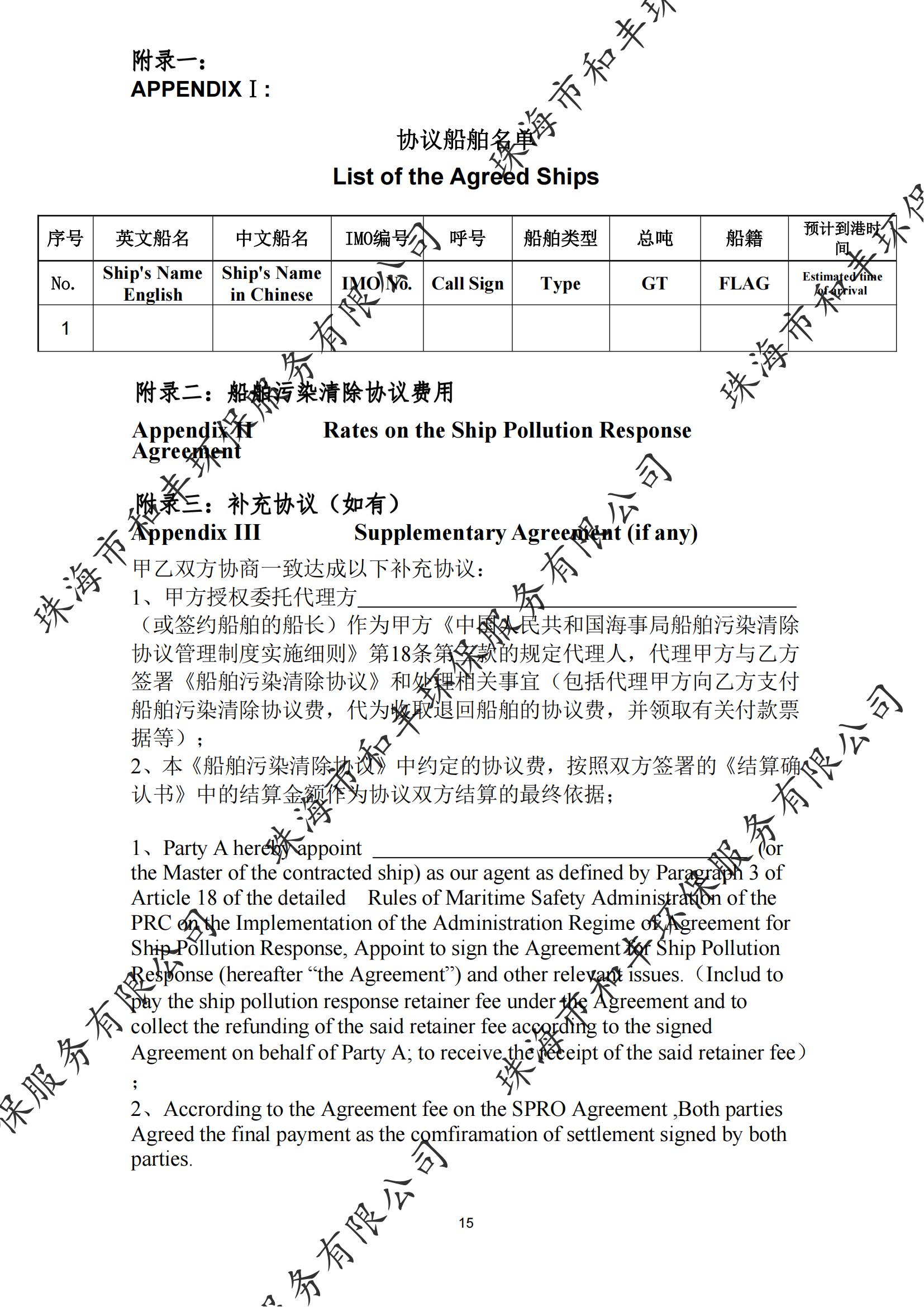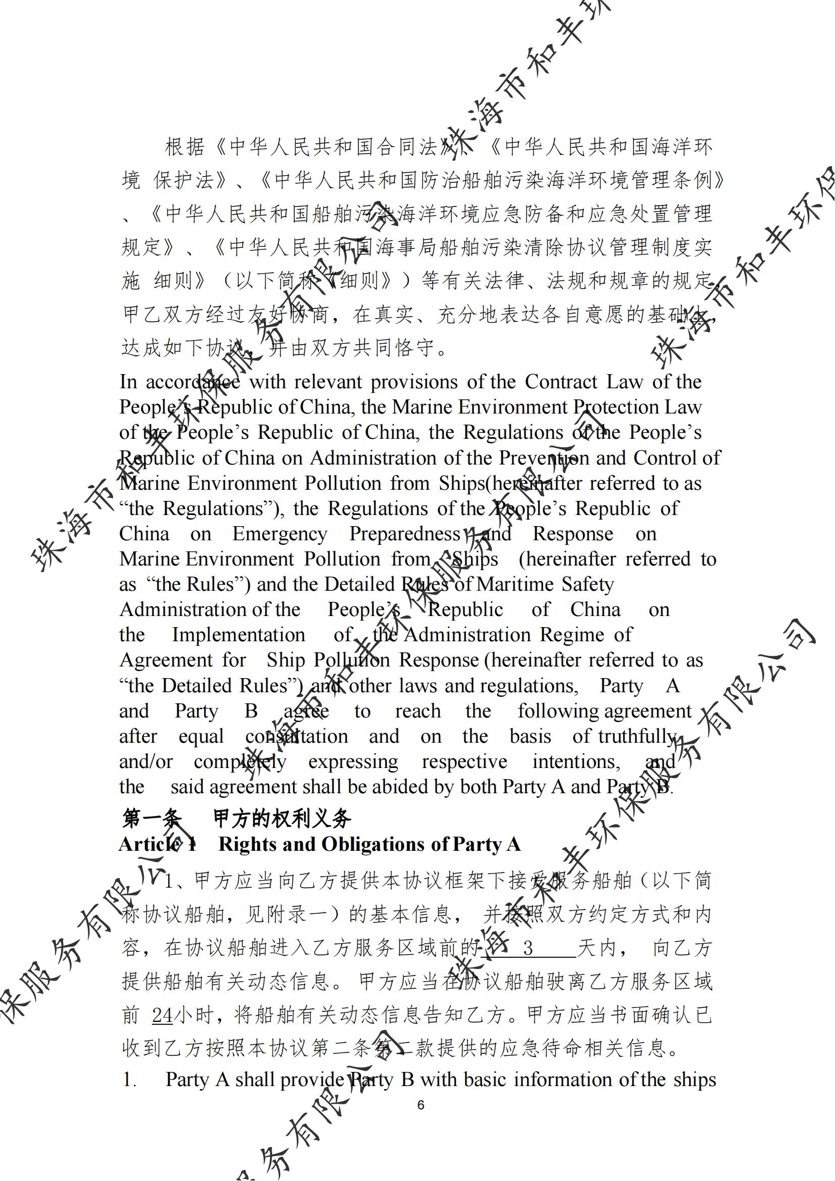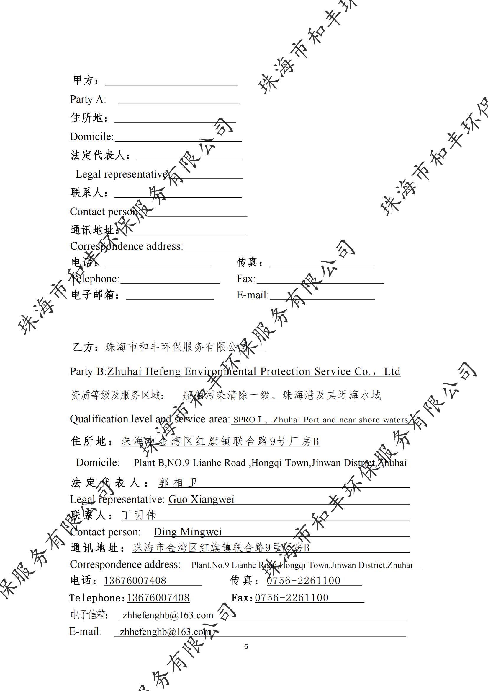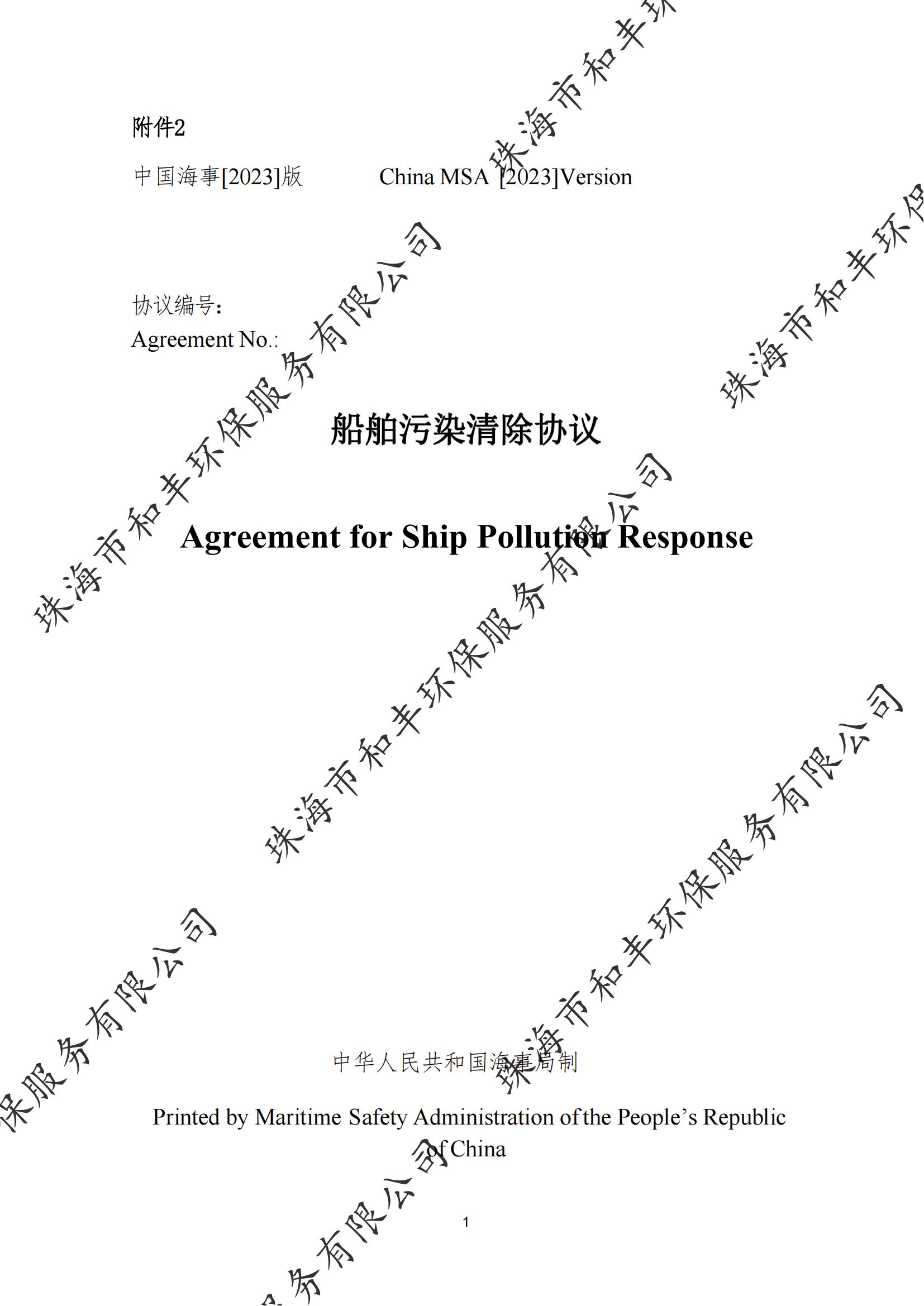 珠海市和丰环保服务有限公司船舶污染清除协议
