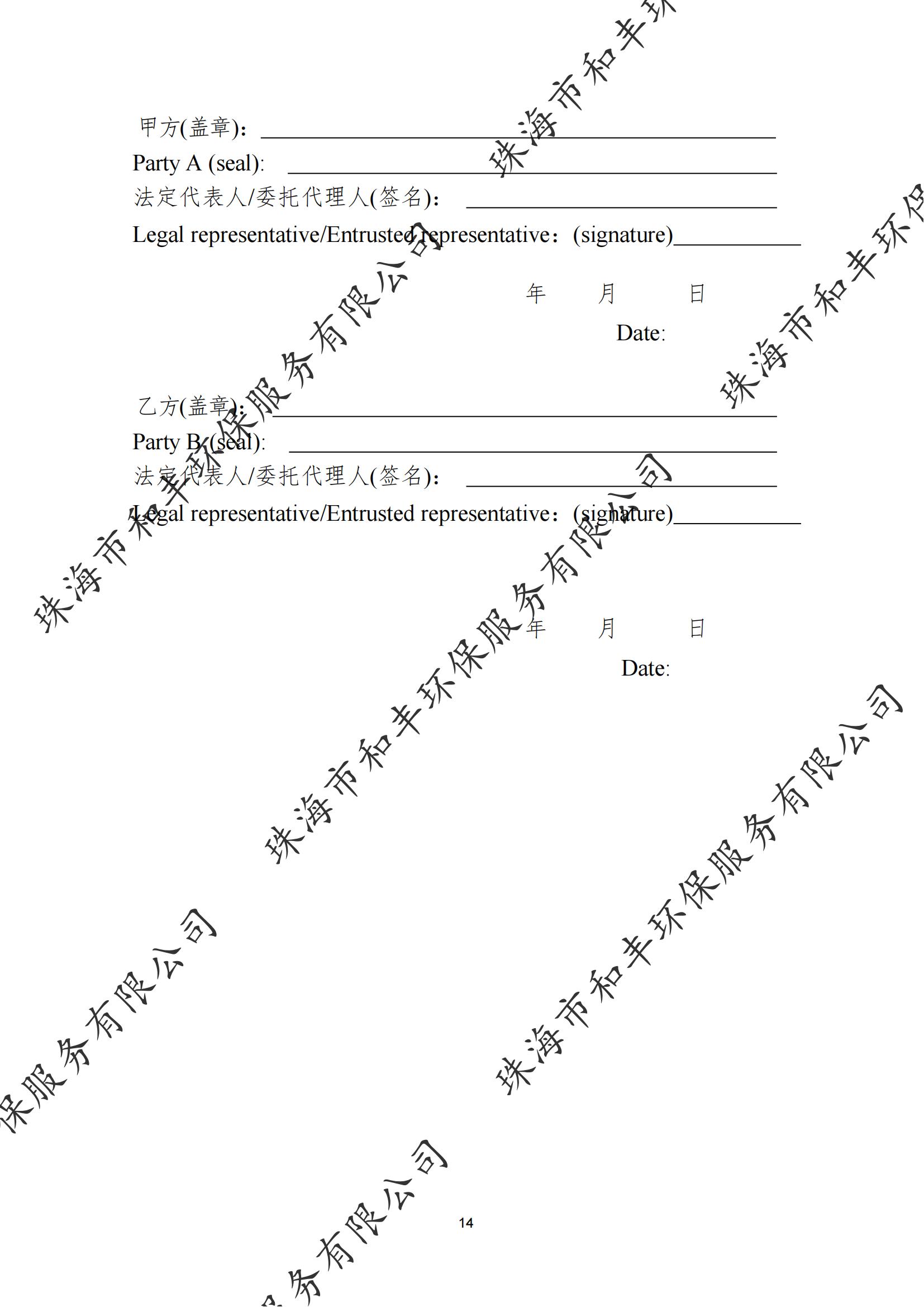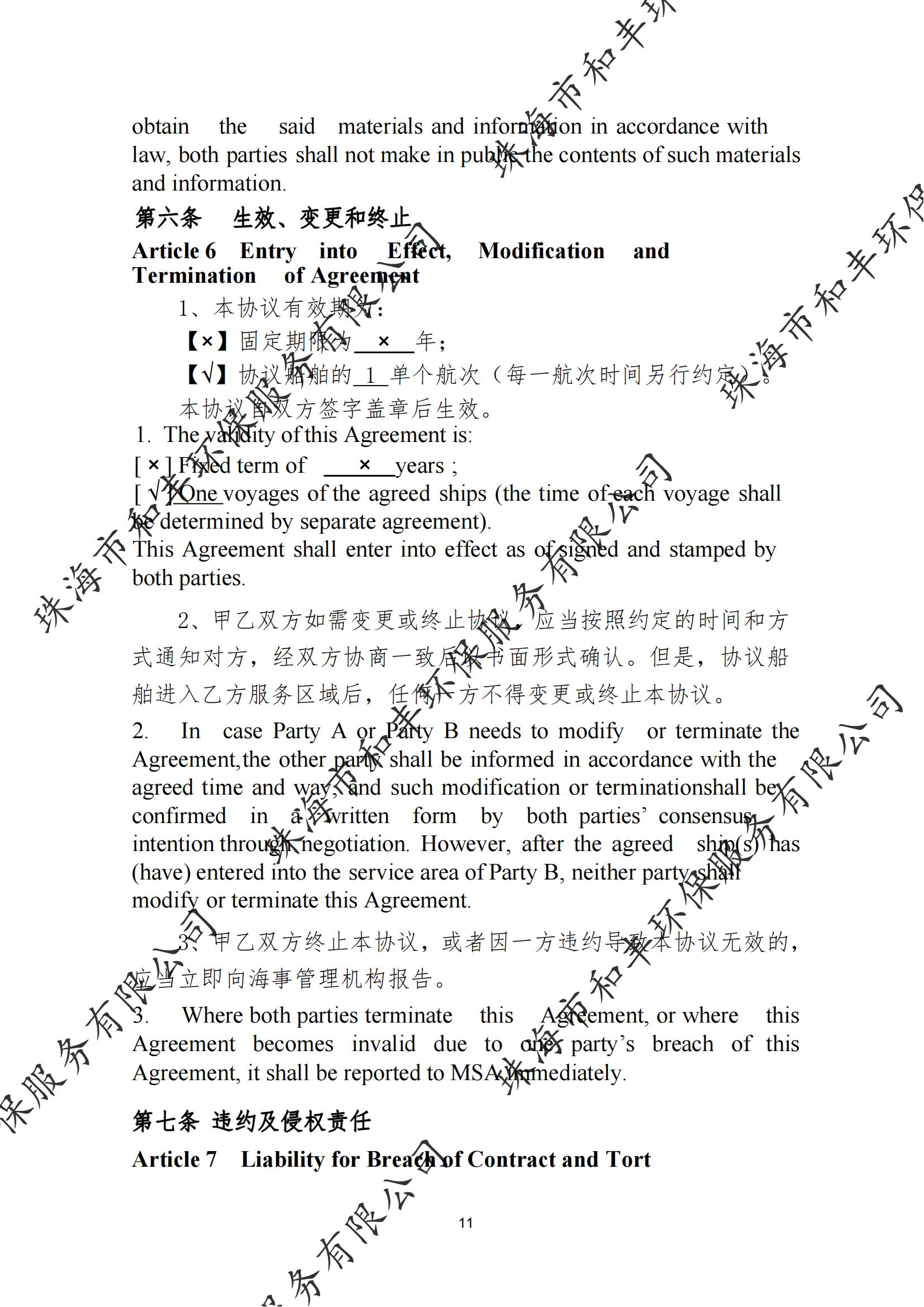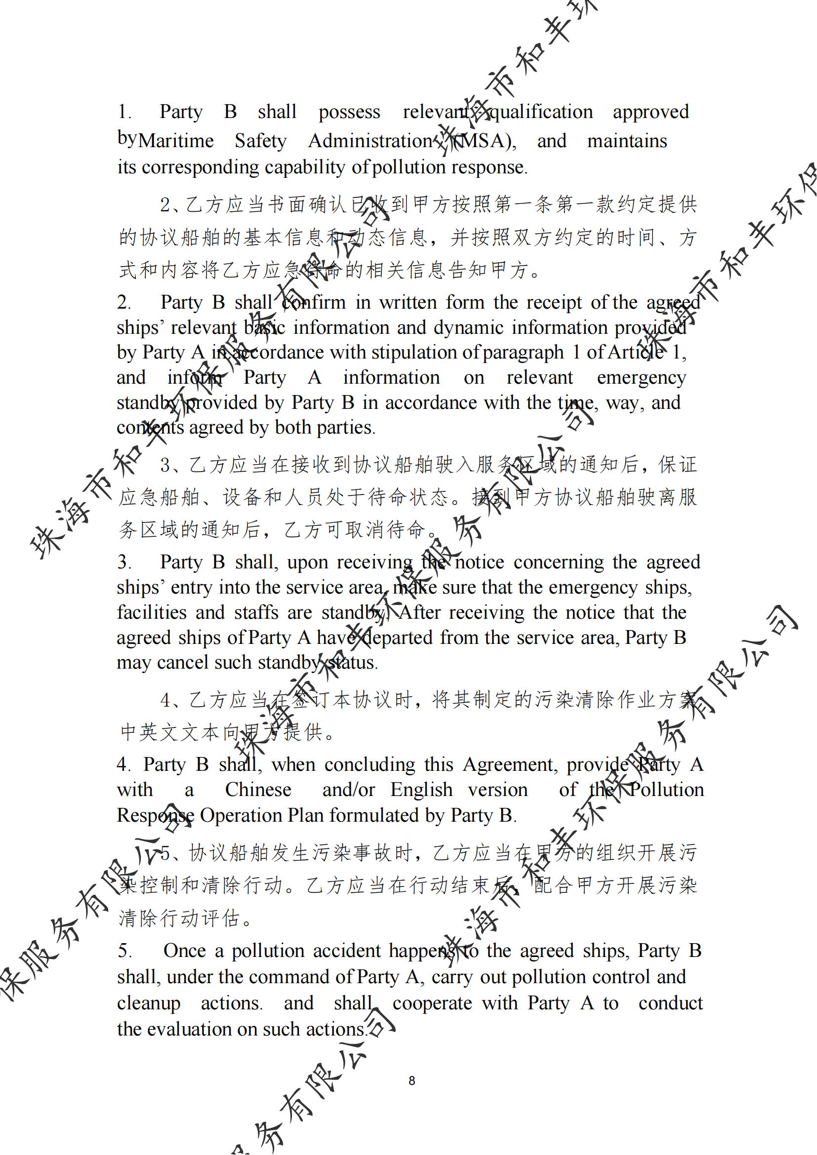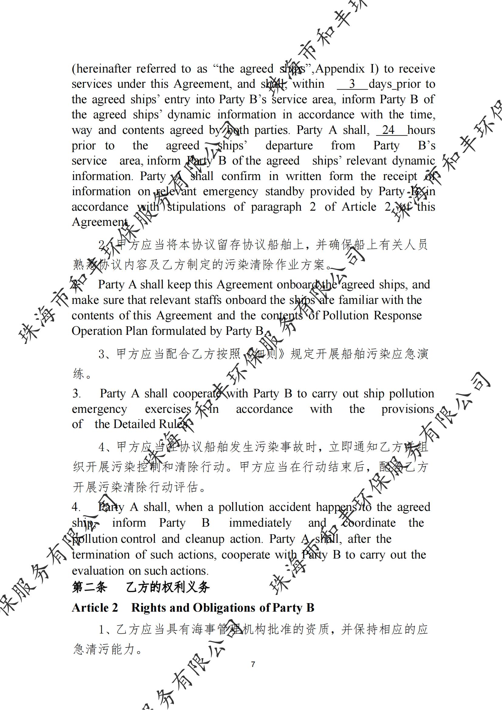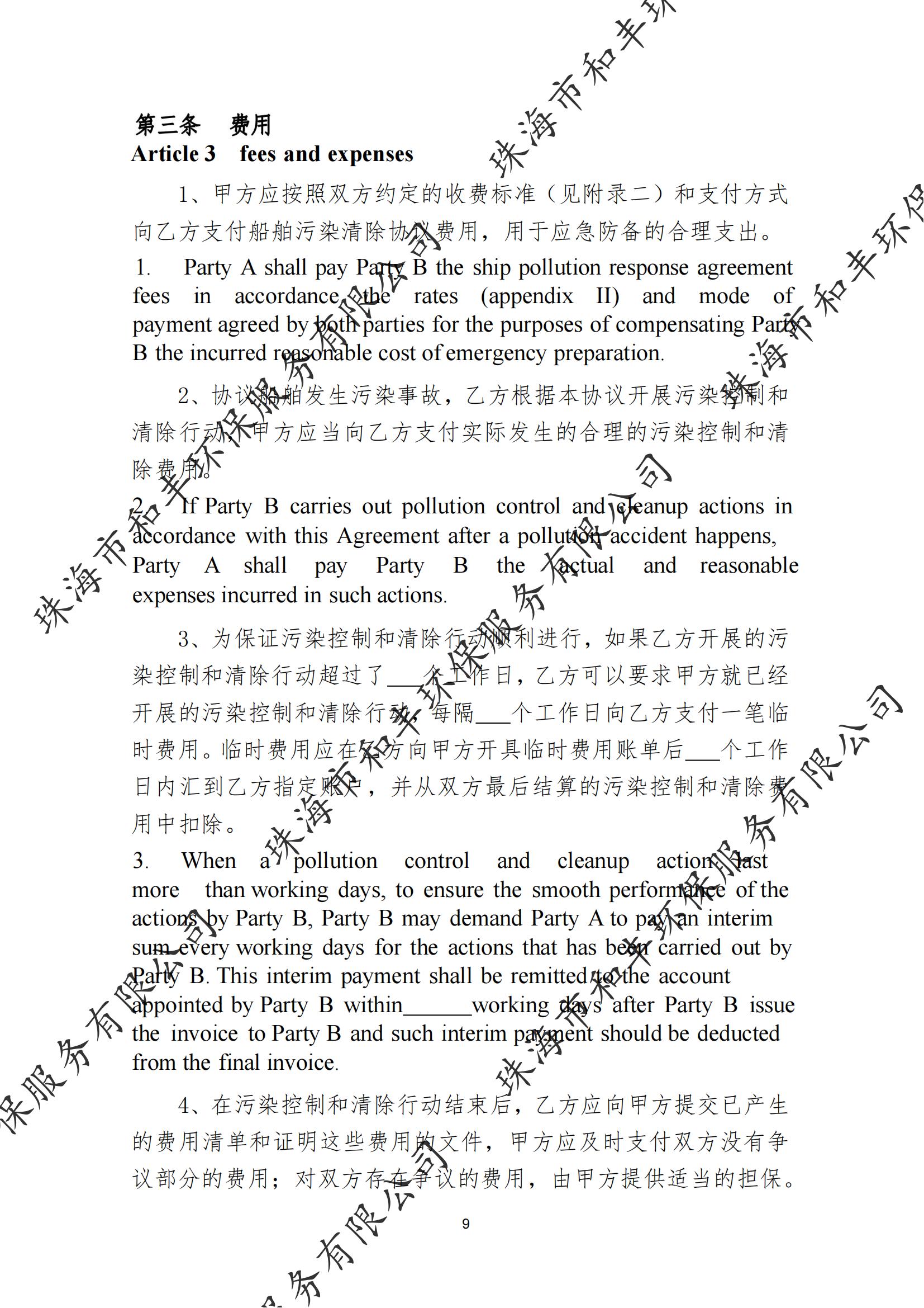珠海市和丰环保服务有限公司船舶污染清除协议