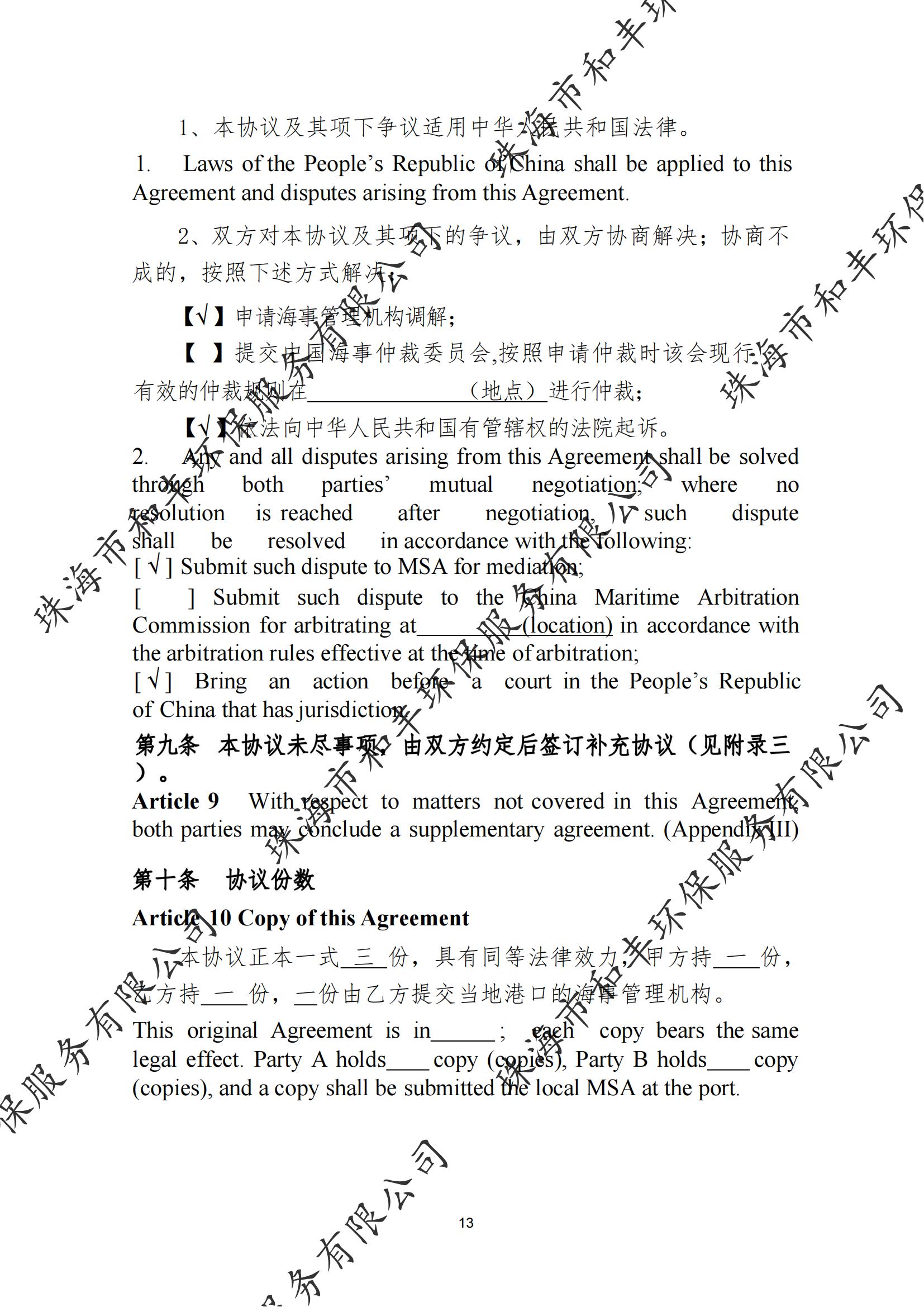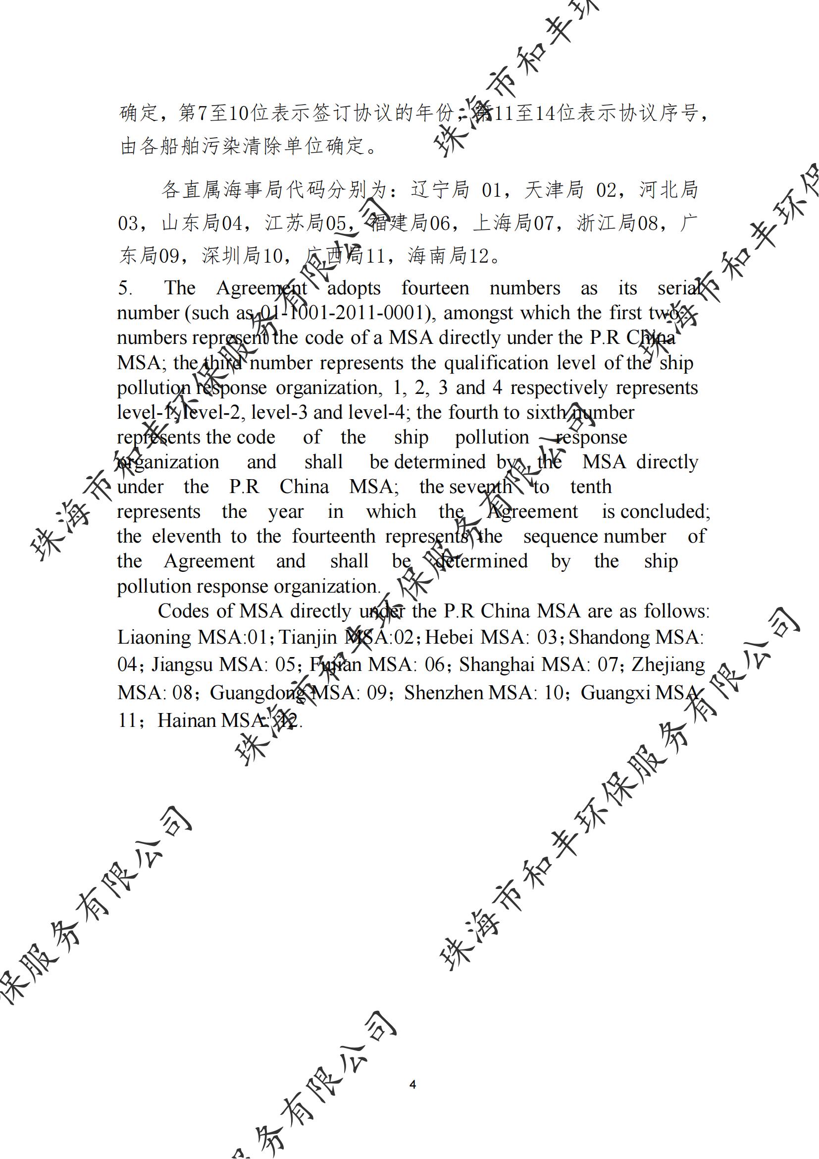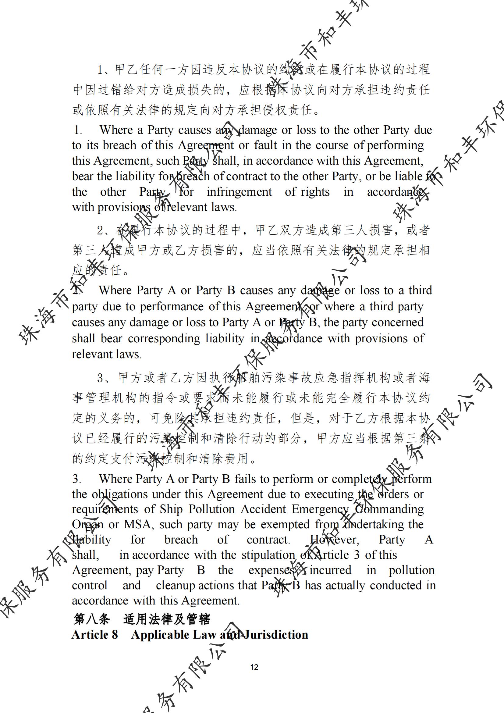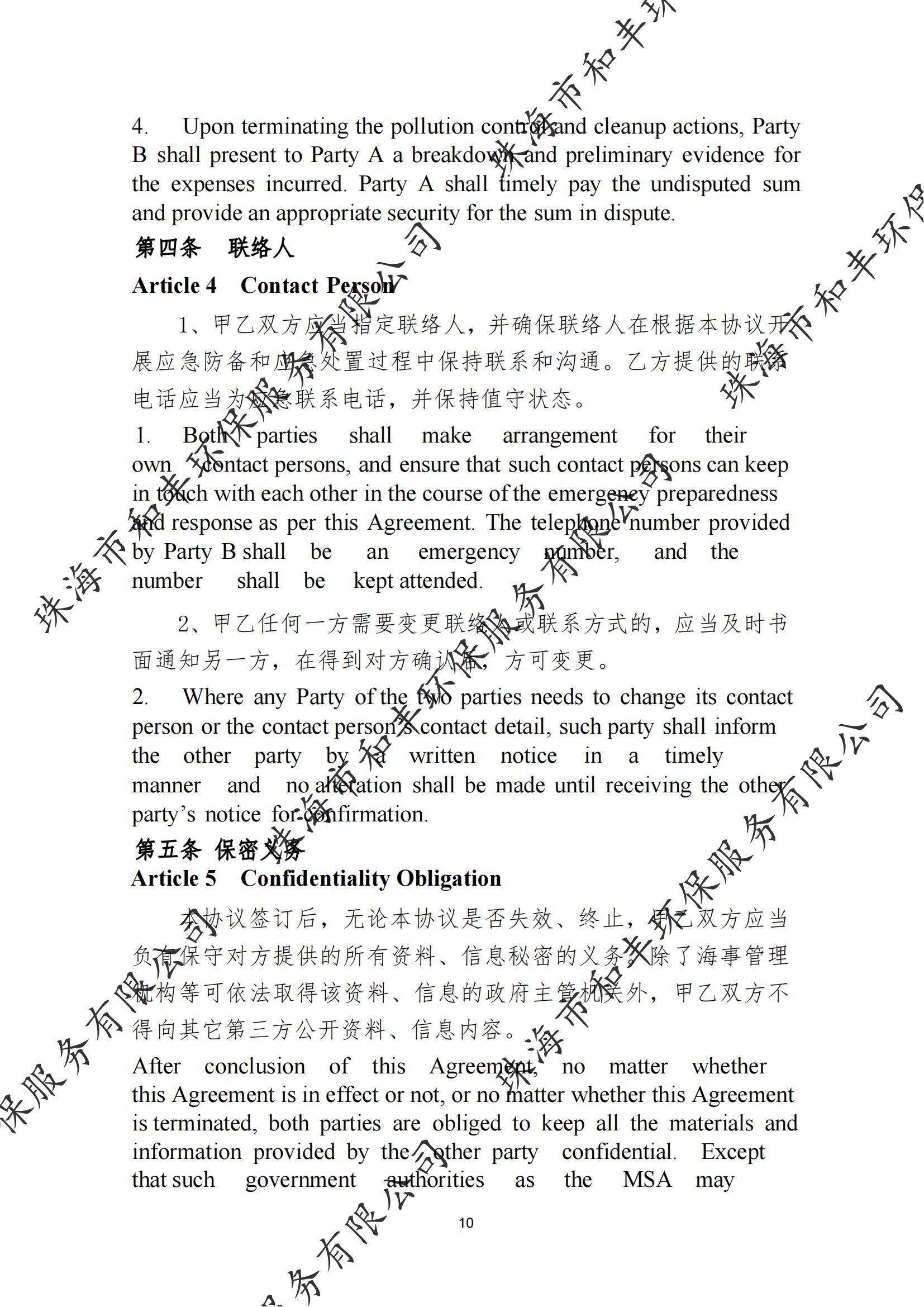珠海市和丰环保服务有限公司船舶污染清除协议