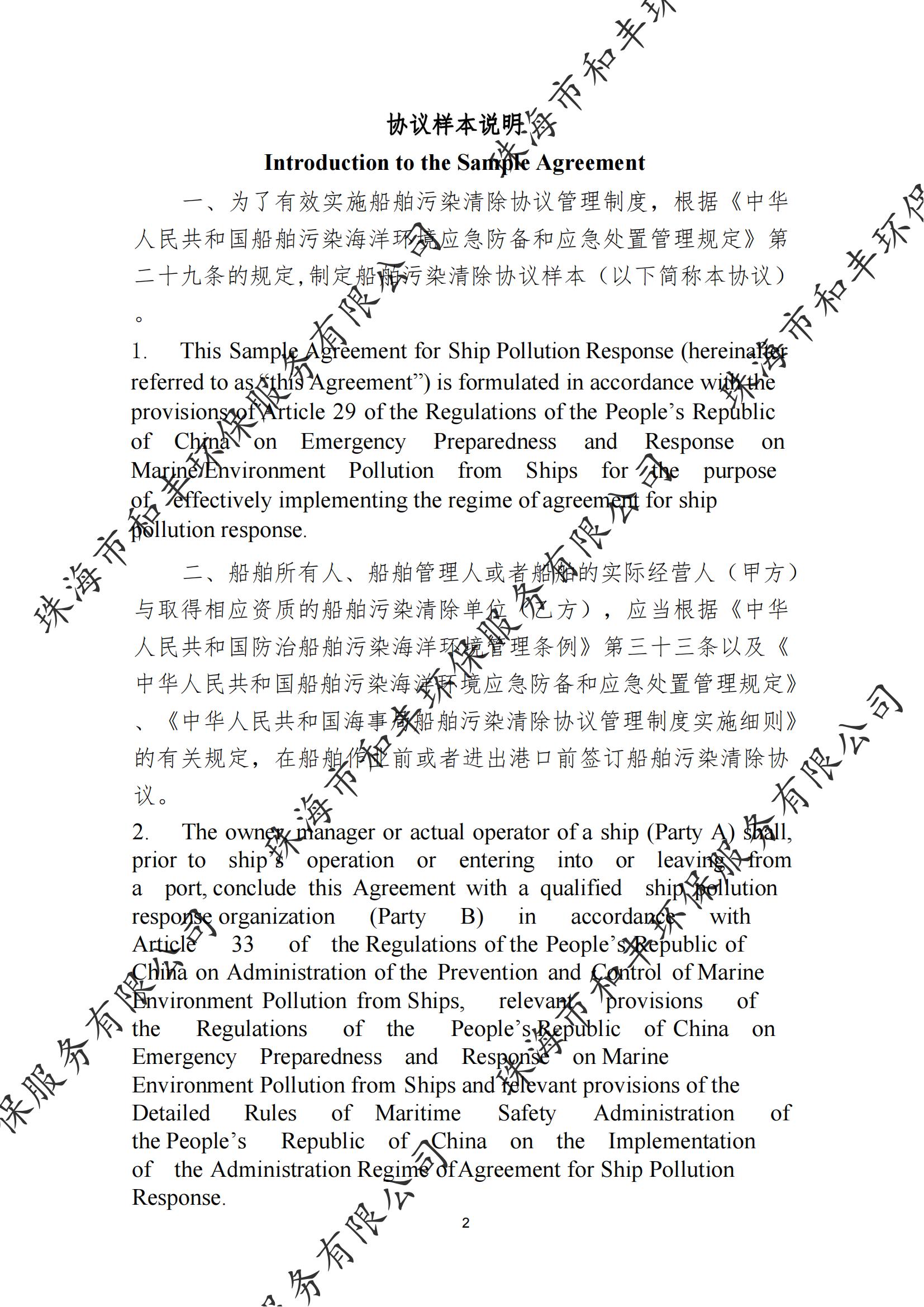 导语:船舶污染清除协议范本