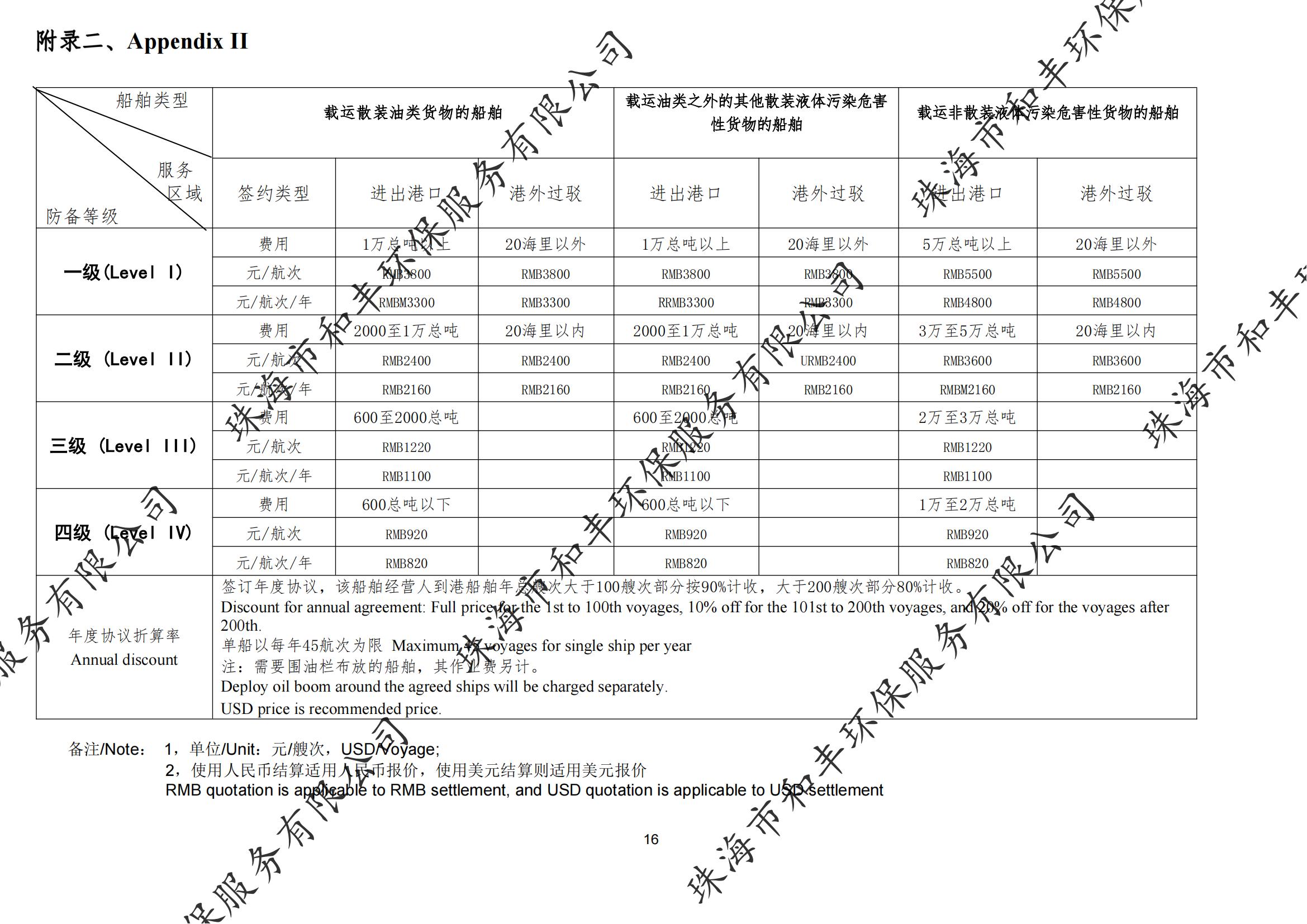 珠海市和丰环保服务有限公司船舶污染物清除协议待命费
